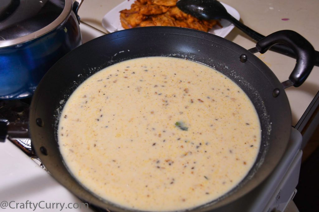 12. If the kadhi becomes too thick, during this cooking you can add some hot water.